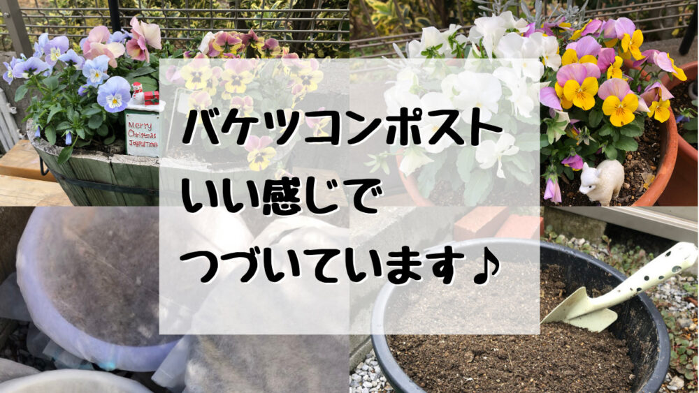 買った肥料は一切使用せずにコンポストの中身と古い土だけで植え付けたのですが、年が明けた今でもきれいに咲いてくれてるのは自己流バケツコンポストが成功している証と言えるのかなと思います♪